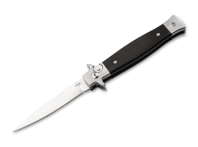 The only “vintage-style” material on the Stiletto 3.5 is the scale material, which is ebony wood – although it almost feels disengenuous to call it such, because ebony is still regularly used on all sorts of knives to this day. The frame is mostly steel, and the deployment button is also, as you may have guessed, the locking mechanism. Many companies have been playing with the button lock in recent years, but we think that Boker chose it for the Stiletto 3.5 because it was a staple on the design going way back. The Stiletto 3.5 weighs 4.44 oz.
